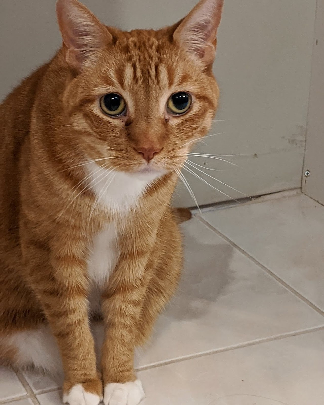 Marmalade using his biggest, saddest, hungriest eyes to request food after being starved (for 5 whole minutes) (2020)