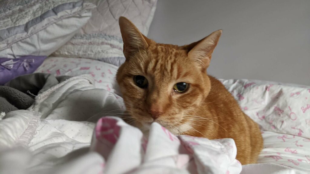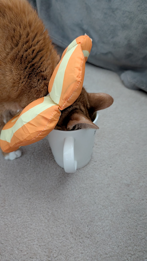 Throughout his life, Marmalade was known to engage in psychological manipulation, using his undeniable cuteness and big eyes to appeal to humans to feed him, and eventually, let him into their beds. Even towards the end of his life, Marmalade was found to engage in behaviour attributed to the trend of “performative males,” which includes listening to boygenius, drinking matcha (as pictured), and expressing interest in Labubus and Dubai Chocolate (which he did not eat only due to his ongoing illness at the time of its availability. He loved chocolate and ate probably too much during his 18 years).