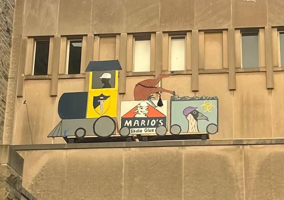 The train, found above the back entrance to the Spencer Engineering Building, was a tribute to Western University culture. The engine pulled behind it two cars, one that showed a beautiful metamorphosis: the famous Western mustang horse being transformed into something far more useful: children’s glue. This was followed by a car filled with the only thing Western produces more of than asshole finance bros: goose shit. This delivery was heralded by another gift to Western Eng: a new mascot in the form of a malevolent goose. While Toike reporters were unable to procure the goose’s name, in my personal opinion, a goose makes a really Shiddy mascot. The train also moved back and forth along a track, playing the occasional choo-choo noise before crashing dramatically.